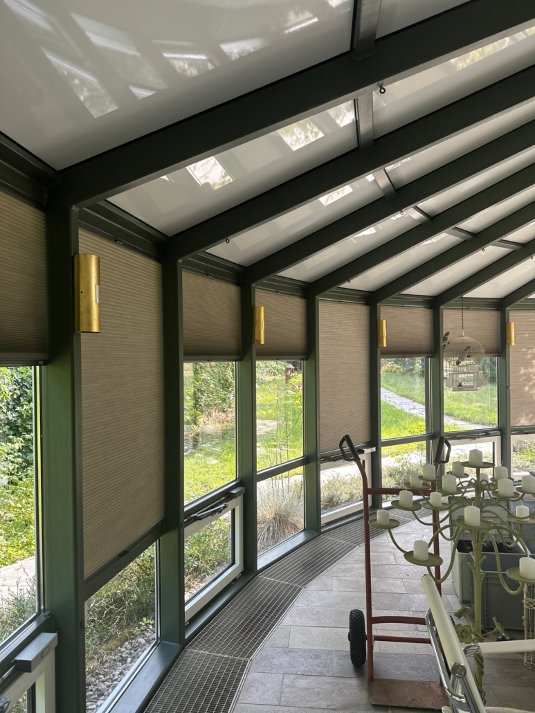 Sichtschutz und Beschattung durch einzeln bedienbare Plissee Anlagen.